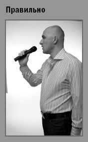 Не меняйте это расстояние в ходе выступления. Куда бы вы ни повернулись, микрофон следует тоже поворачивать, причем оставляя его не только на одном и том же расстоянии, но и повернутым одной и той же стороной. Лучший звук получается, когда микрофон образует перпендикуляр с вертикальной линией вашего лица.