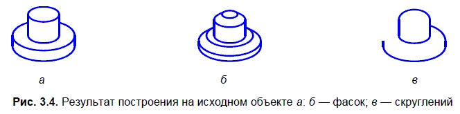 Команда Скругление позволяет скруглить указанные ребра детали (рис. 3.4, в):