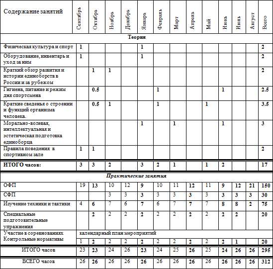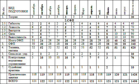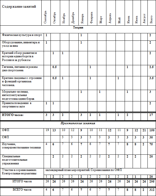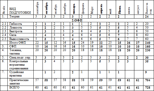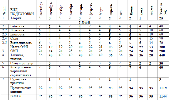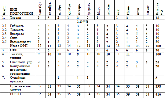 * при необходимости возможные дополнительные тренировочные занятия, время которых не указано в годовом плане-графике распределения часов. * Спортсмены ежемесячно участвуют в мониторинге по ОФП