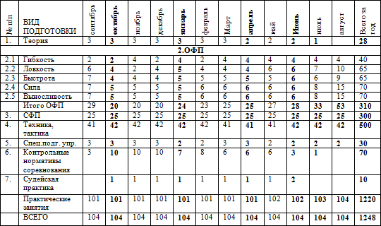 Таблица № 13 Тематический учебный план подготовки на год УТГ 4 года обучения