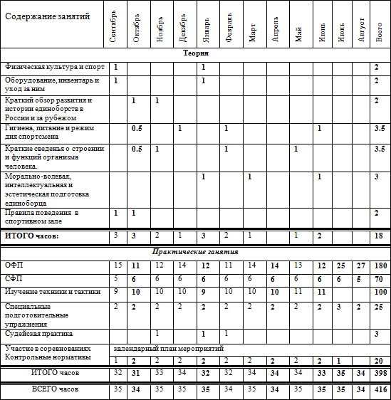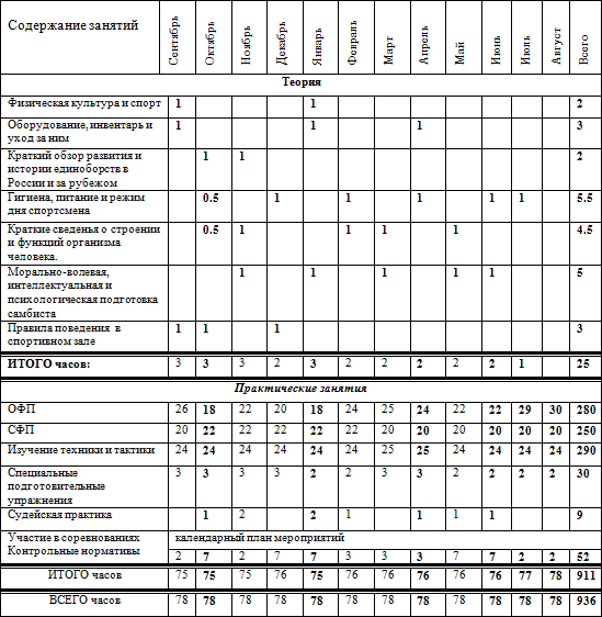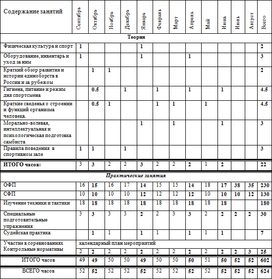9. стабильное выступление в соревнованиях по кикбоксингу.Таблица № 28 Примерный годовой план-график распределения учебных часов ГСС 2 года обучения