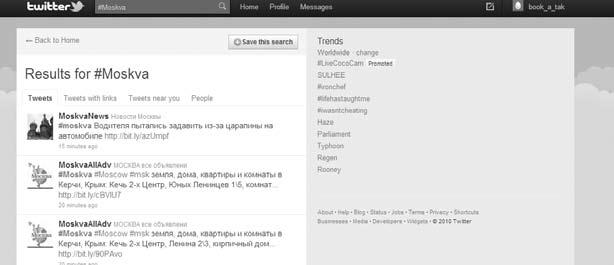 Например, наберите #Moskva и вы найдете других пользователей, которые также твитят с этим хэштегом. И это правило действует для любого слова (рис. 1.40).