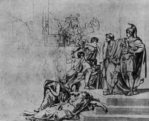 Ликторы приносят Бруту тела его казненных сыновей. Деталь.