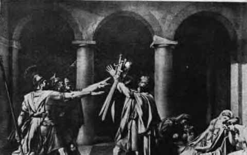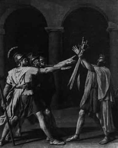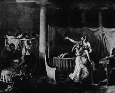 Ликторы приносят Бруту тела его казненных сыновей. Масло 1789.