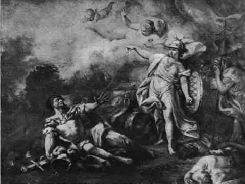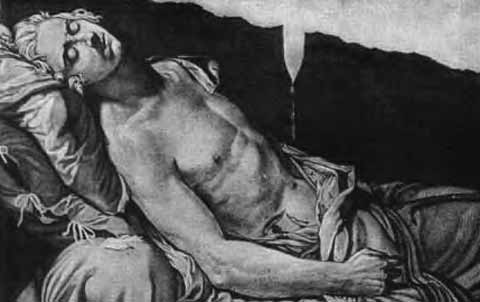 Убитый Ле Пеллетье. Гравюра Тардье по картине Давида. 1793.