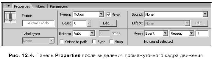 Настала пора рассмотреть поближе панель Properties и все ее элементы управления, доступные в том случае, если выделен любой из кадров анимации (рис. 12.4).