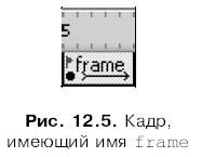 Если мы зададим для кадра имя, он будет выглядеть так, как показано на рис. 12.5, т. е. заданное для него имя будет написано прямо на нем. Правда, это идеальный случай, поскольку кадр растянут, и имя помещается в нем целиком. Если же кадр занимает только одну позицию дорожки, в нем будет виден только красный флажок — знак того, что кадр имеет имя.