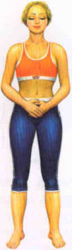 Встаньте прямо. Начните медленно вращать бедрами против часовой стрелки. При движении вперед сжимайте вагинальные мышцы, делайте вдох. При движении назад мышцы расслабьте — выдох. При этом верхний плечевой пояс должен быть расслаблен и неподвижен, а ваши стопы не должны отрываться от пола. Сконцентрируйте внимание на своих интимных органах, почувствуйте в них тепло. Затем поменяйте направление движения — вращайте бедрами по часовой стрелке. Движение выполняйте по 7 раз в каждую сторону.