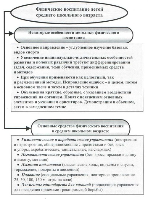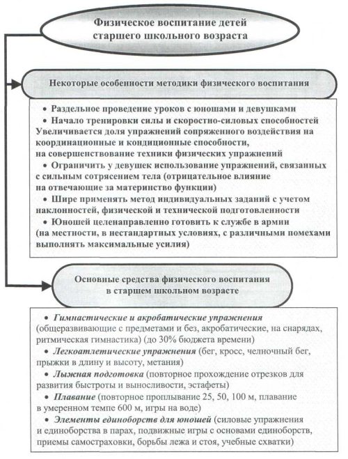 Рис. 9. Особенности методики и состав средств физического воспитания детей старшего школьного возраста