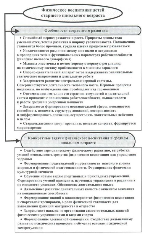 Рис. 8. Особенности развития и задачи физического воспитания детей старшего школьного возраста