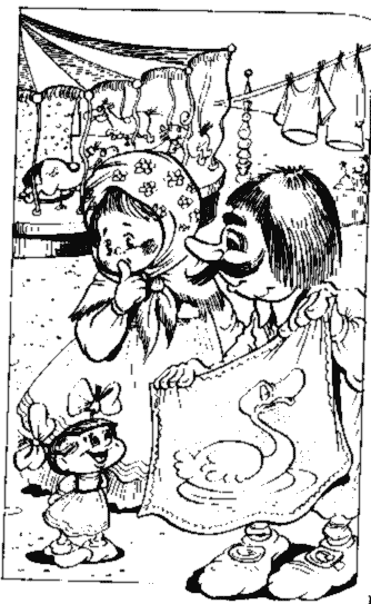 В доме Матрешки не ожидали таких гостей. Каждый занимался своим делом: Аленка вышивала новый ковер, дочери-матрешки убирались в комнате, хозяйка готовила обед, а Петрушка и Ванька-Встанька возились во дворе.