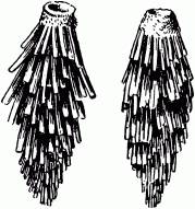 Снимем, одну за одной, все былинки, прутики с шелковой подкладки. Их число очень различно: мне случалось насчитывать по восемьдесят штук и даже больше. Когда снимешь все это, то остается цилиндрический чехол из плотной шелковой ткани. Внутри он гладкий и прекрасного белого цвета, снаружи – тусклый и шероховатый. Вся постройка состоит из трех слоев: тонкого атласного внутреннего, затем – из ткани с примесью деревянистых частичек и, наконец, – наружного из былинок и прутиков.