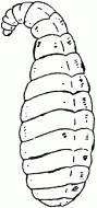Личинка пировала десять–двенадцать дней без перерыва. За это время она выросла до двадцати пяти–тридцати миллиметров, а в ширину достигла пяти–шести миллиметров. Ее тело, слегка расширенное назади, постепенно суживается к голове. Оно разделено на четырнадцать колец, включая сюда и голову, очень маленькую и вооруженную слабыми челюстями. Личинка желтовато-белая, усеяна множеством белоснежных точек, на ее средних кольцах видны отверстия дыхалец.