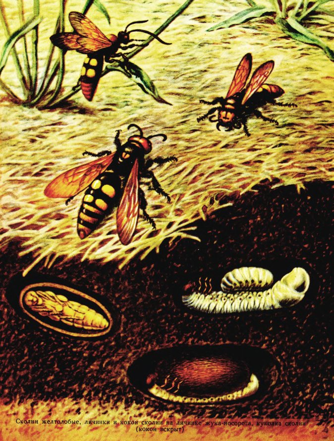Вопрос начинает понемногу разъясняться. Оказывается, сколии-землекопы роются в земле, ища личинок пластинчатоусых жуков.