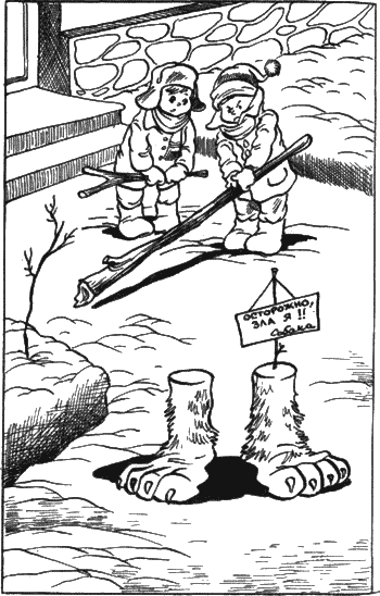 Во дворе с Игорем и другими ребятами делали из снега замок бабы-яги. Ну и саму бабу, конечно. Игорь ткнул палку в голову бабы и говорит:
