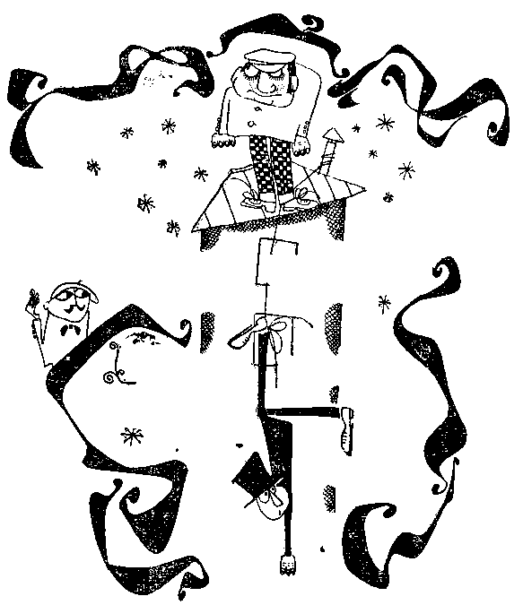 Лифт, к счастью, действовал, я поднялся наверх, выбрался на крышу. Гляжу сверху: трубочист болтается. Попробовал подтянуть — тяжёлый тубочист, наелся ради праздника. Вдобавок тянуть несподручно — я тоже наелся, да ещё в тулупе, и верёвка закручена вокруг вентиляционной трубы. А действовать надо аккуратно, чтобы трубочист не задел носом карниз или что-нибудь в этом же духе. Не исключено, что парень приятной наружности, значит, нос ему ещё пригодится. Но тут замечаю, что верёвка длиннющая и если помаленьку раскручивать её и травить — кто знает, может хватить до самой земли. Ну и начал я травить понемногу. Пущу несколько метров и отдыхаю, поскольку трубочист — чем ближе к земле, тем, негодяй, тяжелее становится. И поглядеть неохота, высоты я побаиваюсь, прямо с души воротит, когда вниз смотришь. Наконец, когда оставалось ещё метра два верёвки, внизу полегчало. Скорей всего трубочист достиг тротуара, там и посмотрим, какая с ним приключилась напасть, — решил я. Передохнул немного, и вдруг захотелось развлечься ради праздничка и съехать вниз по верёвке. Я получше прикрепил её на крыше и съехал на землю. При этом, разумеется, старался не угодить на лежащего трубочиста. И представьте, дорогие граждане, моё удивление, когда оказалось, что никакого трубочиста нет. А вместо него — олень. Точнее, бездыханная туша огромного оленя с великолепными ветвистыми рогами. А трубочист исчез бесследно.