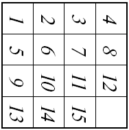 «Давнишние обитатели царства смекалки помнят, как в начале 70-х годов я заставил весь мир ломать голову над коробкой с подвижными шашками, получившей известность под именем „игры в 14–15“. Пятнадцать шашек были размещены в квадратной коробочке в правильном порядке, и только шашки 14-я и 15-я были переставлены, как показано на прилагаемой иллюстрации. Задача состояла в том, чтобы, последовательно передвигая шашки, привести их в исходное положение, причем, однако, порядок шашек 14-й и 15-й должен быть исправлен.