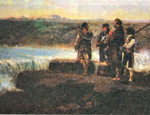 Поначалу все шло гладко: плыли на пирогах по притоку Миссисипи — Миссури, и хотя те земли были еще «белым пятном», путешественникам помогала сама природа — равнина казалась одним из самых прекрасных мест на свете. Но потом начались трудности. Приходилось оставлять весла, тянуть лодки бечевой, волоком, идти вброд, по болотной грязи, под обвалами берегов. До исступления доводили зеленоголовые слепни и оводы.
