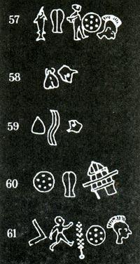 Истина 57. Третий знак — рисунок человека со связанными за спиной руками. Представляется, что таким образом выражено понятие «связи», «связывания». Попытаемся прочесть: «Рыба путем процессов клеточного деления и связывания из невидимых зерен материи преобразуется в человека».