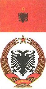 Двуглавый орел как символ свободы и независимости известен в Албании с XV века. Он фактически повторял герб Византии, противостоявшей, как и албанские княжества, турецкой агрессии. Такой же орел на желтом щите под белой шестиконечной звездой изображался на гербе феодального рода Кастриоти. Один из представителей этого рода — видный государственный деятель и военачальник Георгий Скандербег — возглавил в 1443 году борьбу за объединение Албании и сохранение ее независимости и в течение четверти века успешно отражал турецкие нашествия. Флагом Албании при Скандербеге стало красное полотнище со взятым с его герба черным двуглавым орлом. Эмблема орла приобрела большую популярность в этой горной стране, ибо согласно легендам албанцы считали себя потомками орлов, а сама страна на албанском языке и поныне именуется Шкиперия — «Страна орлов».