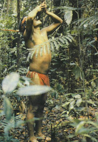 Потом поймали змею с оранжево-черными полосами. Индейцы называют ее «эль тигре» и говорят, что она ядовита. Карло, специалист по змеям, бросился нас разуверять и в доказательство начал играть с ней. Он любит повторять, что туземцы часто преувеличивают ядовитость змей — рисковый парень! Однако с огромными лягушками, которых мы видели в окрестностях Канаимы, даже он не решился иметь дело. Хотя никто нас не предупреждал, что именно у них индейцы заимствуют яд для своих стрел.