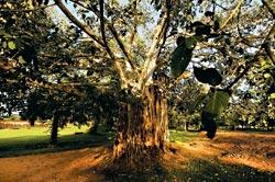 Само растение, в тени которого благодать осенила Гаутаму, — обычный среднего роста фикус, на вид в самом деле исключительно ветхий. Ответвления мощного «тела» приходится поддерживать специальными металлическими конструкциями, чтобы не обломились.