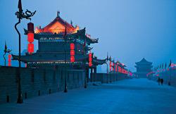 Последняя масштабная реставрация городской стены проводилась в Сиане в 1983 году — тогда на ней и появились красные фонари и столбы в форме дракона. Фото: DANNY LEHMAN/CORBIS/RPG