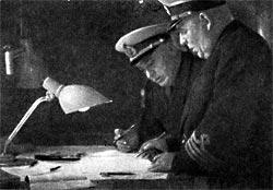 — В кают-компании дока вы бы не заметили ничего особенного, — рассказывает докмейстер. — Здесь качка почти не ощущалась. Все оставалось на местах: стаканы, лампы, приемник. Только приборы центрального поста управления сообщали: док лихорадит, док в опасности.