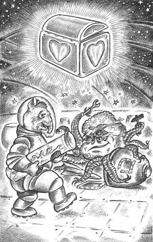 Ринко пришел в себя уже в челноке с двумя главными мыслями: «Живой?!» и «Лечу!» Третья мысль заставила испуганно подпрыгнуть сердце: «Подарок!» Глаза лихорадочно метнулись по сторонам и с облегчением зафиксировались на серебристом контейнере. Слава Звездам, Бубо оказался более стойким к пойлу из пузырька и сообразил запихнуть ценный груз в челнок! Вместе с бесчувственным телом Ринко.