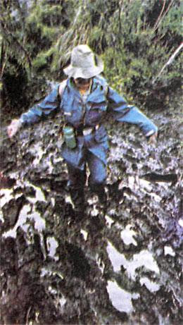 Пеший маршрут порой проходил по большим, участкам зыбучей грязи и завалам, но экспедиция шла вперед.