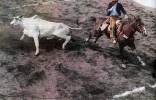 Чарреада тем временем идет своим чередом. Королева празднества, избранная жюри, дает знак началу соревнований. Первые из них — десять испытаний, в терминах чарреады, «десять судеб» или «удач». Кто из тех ловких ребят будет удачливее в выездке коня, умении остановить его после стремительной скачки? Кто догонит бычка, схватит его за хвост и повалит на землю? Кто усидит на диком бычке?..