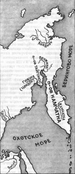 Любопытно получается. Выходит, все перечисленные реки, по мнению человека, написавшего «Сказание», впадали в то же море, что и Амур, то есть в Охотское. Можно понять, как оказался среди них Анадырь. Когда казачьи ватаги шли с запада на восток, их пути разделяли сотни километров. Уставшие люди выходили к берегам Берингова и Охотского морей и могли миновать узкое основание лежащего между ними полуострова. Так оба моря сливались для них в одно.