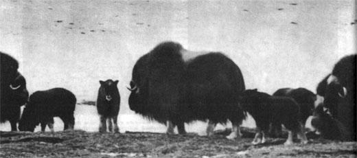 Этот отдаленный и безлюдный тундровый край мы, биологи, выбрали как место первоначального обитания овцебыков. И не ошиблись. Снега здесь выпадает мало, да и сходит он довольно быстро, а арктические быки любят малоснежную, изрезанную низинами и буграми тундру. Зимой пасутся на оголенных от снега возвышенных участках, с началом весны спускаются в долину на богатые травянистые пастбища. Суровая зима для них не помеха, они имеют непродуваемую, теплую шубу: длинная шерсть почти достигает копыт, а под ней скрыт легкий и нежный пух. Именно за свою великолепную шубу овцебыки и ценятся.