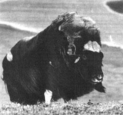 Как-то в один погожий день я выехал на лодке к этому стаду, чтобы только поснимать животных. Причалил к высокому песчаному берегу, где была установлена палатка. С тяжелым рюкзаком и кинокамерой в руках начал карабкаться по сыпучей крутизне яра. Добрался до верха, осторожно выглянул. Палатку не сразу обнаружил. Ее ветром распластало по земле. А где же овцебыки? Не успел осмотреться, как выше по берегу реки из низины показалось стадо. Оно шло в мою сторону. Потихоньку сполз под обрыв, подготовился к съемке. Теперь все внимание на стадо. Вот оно уже в нескольких десятках метров от меня — на минуту задержалось, поедая на бугре обильную зелень. Какой-то шум со стороны тундры заставил обернуться. На берег реки выходил вожак, он шел прямо на меня. Приподнимаюсь и нажимаю на кнопку кинокамеры. Бык моментально уловил стрекотание, резко остановился, ноздри расширились, загривок взъерошился. Нет, он не думал отступать. Стадо было рядом, и он защищал его. В мгновение ока бык оказался рядом со мной. Мне даже почудилось, что он дохнул в объектив кинокамеры. Не помню, как я скатился под самый обрыв. Вся аппаратура была забита песком. Вдоль реки ушел на соседний яр, поднялся наверх. Вожак, как пастух, угонял стадо в тундру...