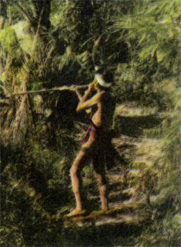 Я искупался и поел, переоделся в сухую одежду, закутался в одеяло и уснул, хотя было всего семь часов. В эту ночь ничто не помешало мне спать — ни комары, ни жесткое ложе из коры, ни странные голоса ночных джунглей.