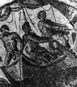 При раскопках города Дура-Европос на Евфрате найден был римский щит, обычный пехотный scutum — полуцилиндр из воловьей кожи, набитой на деревянную основу. Необычной оказалась поверхность щита, на которой его владелец начертил пути своих походов, аккуратно разметив этапы и расстояния (в римских милях) от Византии к устью Дуная, далее к Ольвии и в Крым, оттуда морем в Трапезунд и многодневным маршем в армянскую Артаксату. Внизу щита он нарисовал синее море с кораблями и реки — синими извилистыми линиями. Получилось нечто вроде карты, где недоставало только последнего маршрута — из Армении на Евфрат.