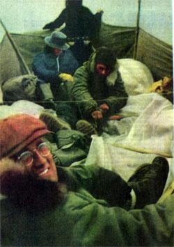 Американцев было семеро: двадцативосьмилетний руководитель и организатор похода Джон Бокштос, самый опытный полярник в группе, десять лет занимавшийся исследованиями в Арктике и имевший за плечами шесть зимовок; Майкл Астор, Робин Лейи Фокс и Тони Митчелл из Нью-Йорка; Джим Джексон из Аризоны, а также два аляскинских эскимоса — Боб Тивук и Эрл Кингик. Экспедиция ставила перед собой всего две задачи. Во-первых, чисто спортивную: проплыть в эскимосской лодке от Берингова пролива до Гренландии, преодолеть пять тысяч миль вдоль едва ли не самых безлюдных берегов на земном шаре. Во-вторых, научную: изучить быт североамериканских эскимосов и доказать пригодность их традиционных лодок-умьяков для дальних морских путешествий.
