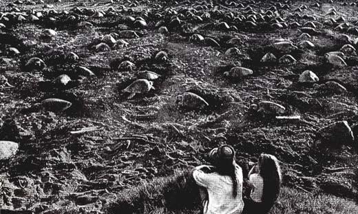На следующее утро на берег опять вышел тот же самый крестьянин вместе с десятком других. На сей раз каждый привел с собой свинью, и они принялись энергично рыть песок своими пятачками, довольно похрюкивая, когда нападали на склад яиц. С ними соревновались деревенские собаки, а стервятники и крабы подбирали остатки яиц, не замеченные главными сборщиками.