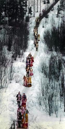 На палубе в легком хороводном ритме появляются танцевальные пары. Девушки — как синие цветы, нечаянно расцветшие под северным небом. Лихим аккордом взрываются гармони, заливаются рожки и свирели в обнимку с балалайкой. В бесшабашном вихре мелькают цветастые рубахи, сарафаны вьются вокруг ног. Дробь каблуков сыплется как горох...