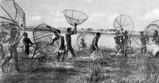 Принято считать, что кочевники по натуре своей индивидуалисты. Однако дело тут скорее в условиях существования, которые порождают обособленность. Стоило измениться традиционному укладу, и это нашло отражение в психологическом настрое членов племени нджемпс. Коллективный труд по освоению земель пришелся по душе бывшим кочевникам. Объединились в кооператив и рыбаки. На их вооружении не только лодки собственной конструкции, которые люди нджемпс и живущие бок о бок с ними туген сооружают из легких — легче пробки — стволов местного дерева амбач, но и моторный бот, и плоскодонки заводского производства, и нейлоновые сети, приобретенные за счет государственного займа.