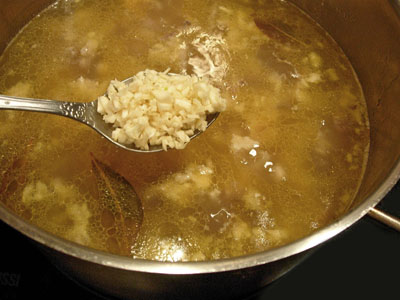 Измельчаем чеснок, нарезаем несколько колечек острого перца (его количество зависит от вкусовых пристрастий), натираем на терке очищенный имбирный корень.