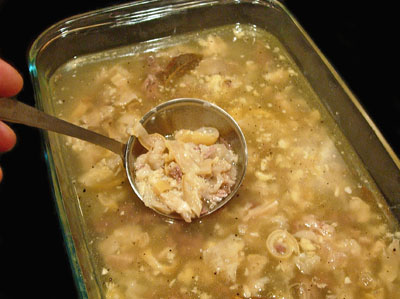 8. Пол стакана "соуса", состоящего из примерно четверти стакана воды, четверти стакана водки (вьетнамцы используют рисовую, но наша, ясен пень, лучше), двух чайных ложек сахарного песка и трех столовых ложек соевого соуса.