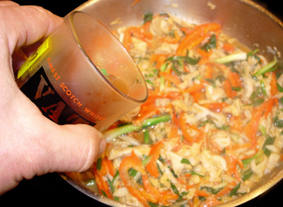 Ну и, наконец, подготовим соус. В четверть стакана воды вольем водки - столько, чтобы стакан заполнился наполовину, вмешаем две чайные ложки сахарного песка и добавим три-четыре ложки соевого соуса.
