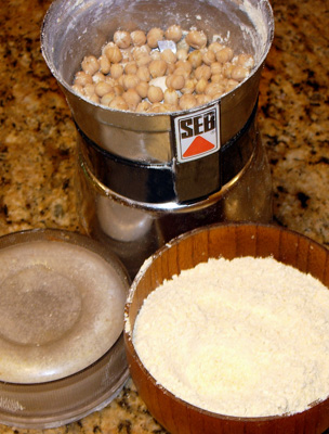 Добыть нутовую муку очень просто: достаточно примерно стакан сухого нута в два приема перемолоть в обычной кофемолке. Вот так, например: