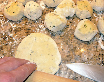 Столь же мелко крошим два-три тонких ломтика полукопченной колбасы или ветчины, смешиваем с рубленым луком и сдабриваем черным молотым перцем и маленькой щепоткой соли.
