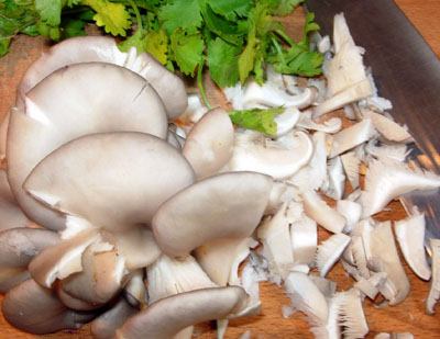 2. Граммов пятидесяти грибов вешенок (он же - устричный гриб и из нелесных грибов самый, пожалуй ароматный, ароматнее шитаке)