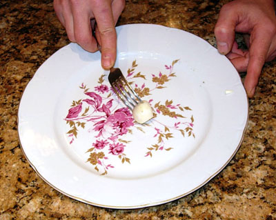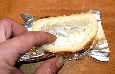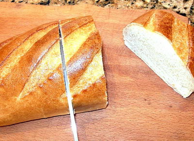 Для первого поступаем так. Включаем на максимум духовку и, тем временем, отрезаем от свежего хлебного батона два куска потолще.