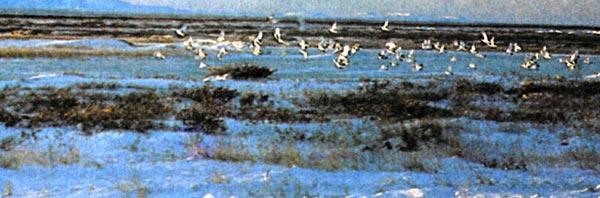 Куропатки начали зиму сытно и весело. Они кочевали в ближней округе по берегам замороженных озер, легко доставая из-под тонкого слоя снега хрусткую янтарную морошку, клевали синий жемчуг голубики, по берегам реки Паляваам и ее притокам теребили кончики ивняковых и ольховых ветвей.