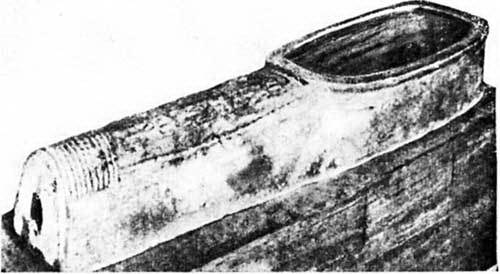 Для погребения служили покрытые глазурью глиняные саркофаги, напоминающие по форме туфлю. Конец I тысячелетия до н. э. Длина 1,91 м
