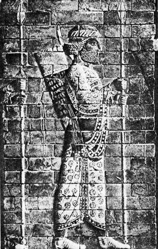 Настенный рельеф из разноцветного кирпича украшал дворец Дария I в Сузах. Изображены телохранители царя, «бессмертные». Около 500 г. до н. э. Высота 1,83 м